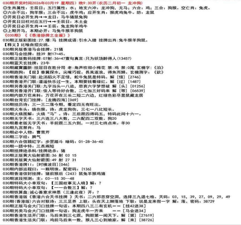 030期香港正版挂牌图文