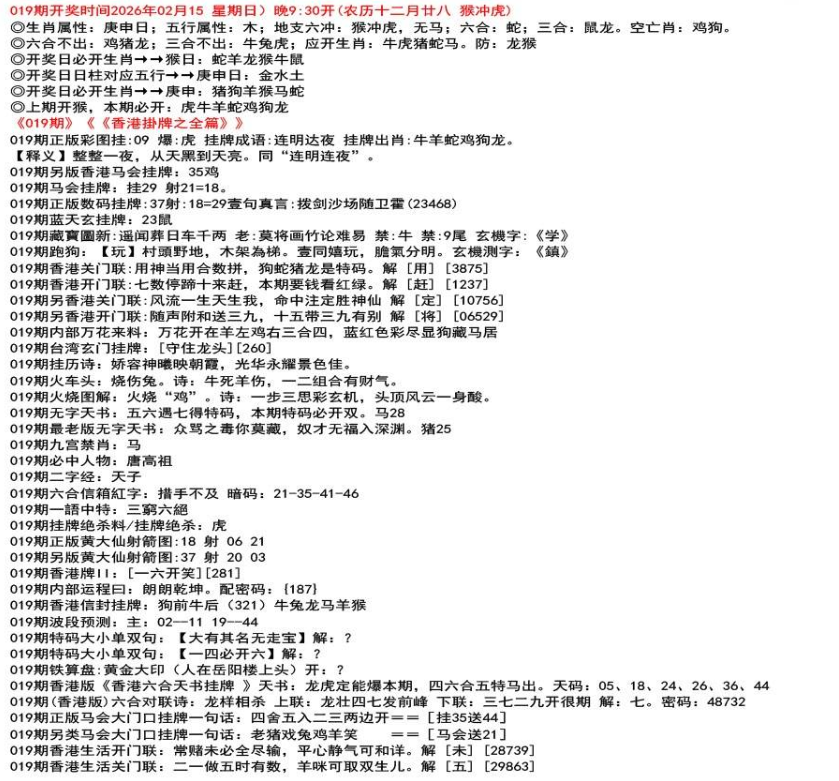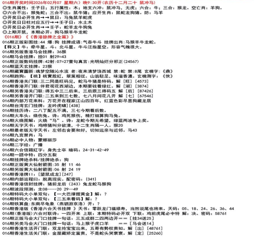 ◎六合不出:牛龙猴;三合不出:鼠蛇鸡;应开动物:羊兔猪虎狗。防:鼠马